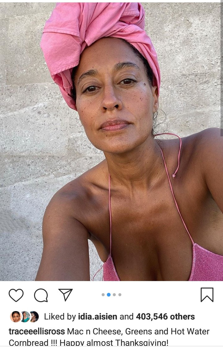 Tracee Ellis Ross, 47, has got a great body and she flaunted it while posing in a pink bikini. The actress shared the photos with the caption: "Mac n Cheese, Greens and Hot Water Cornbread !!! Happy almost Thanksgiving!" See more below.
