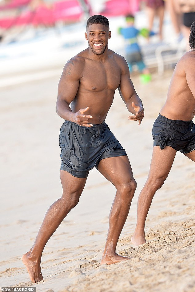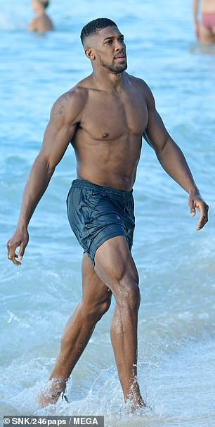Anthony Joshua spent the final day of 2019 at a beach in Barbados. The world heavyweight champion stripped down to black swimming shorts and flaunted his muscular physique after taking a dip in the sea.