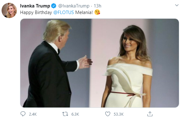 Donald Trump's daughter, Ivanka also wished her stepmother a happy birthday tweeting: "Happy Birthday @FLOTUS Melania!"